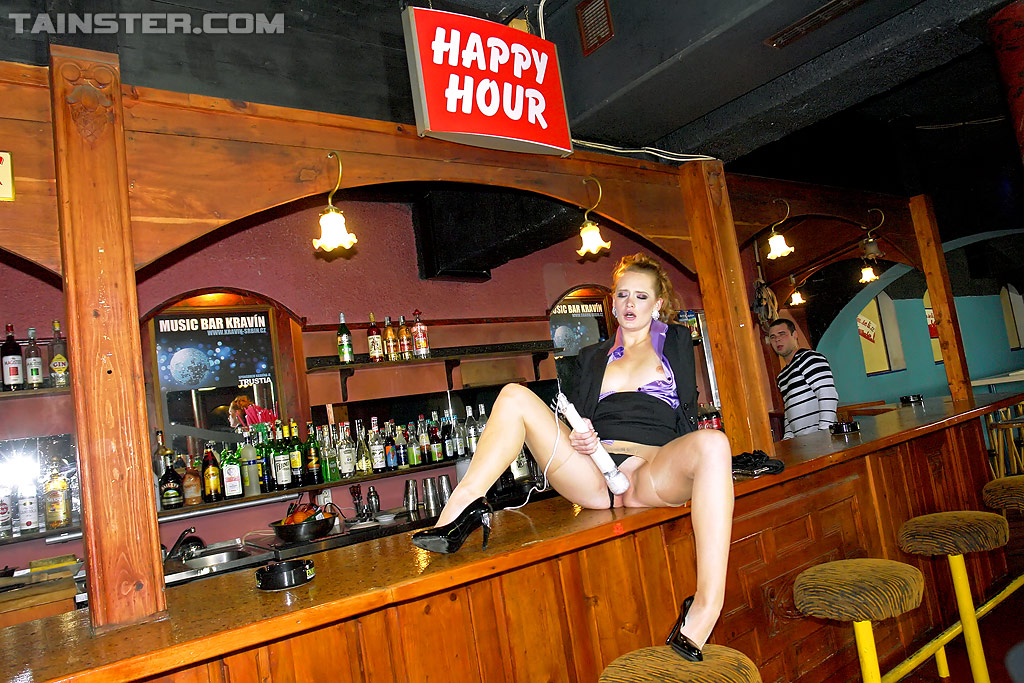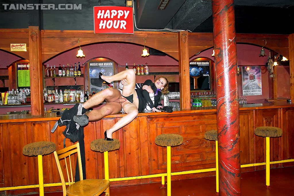 Решив отметить годовщину совместной жизни как-то по-особенному, развратная супруга попросила мужа арендовать на вечер их любимый бар и прямо там заняться любовью. Мужик согласился, и вечером они остались одни в просторном помещении. Сначала мужчина поимел избранницу на барной стойке, после чего добавил к процессу вибратор для подруги и в конце выполнил все грязные желания женщины.