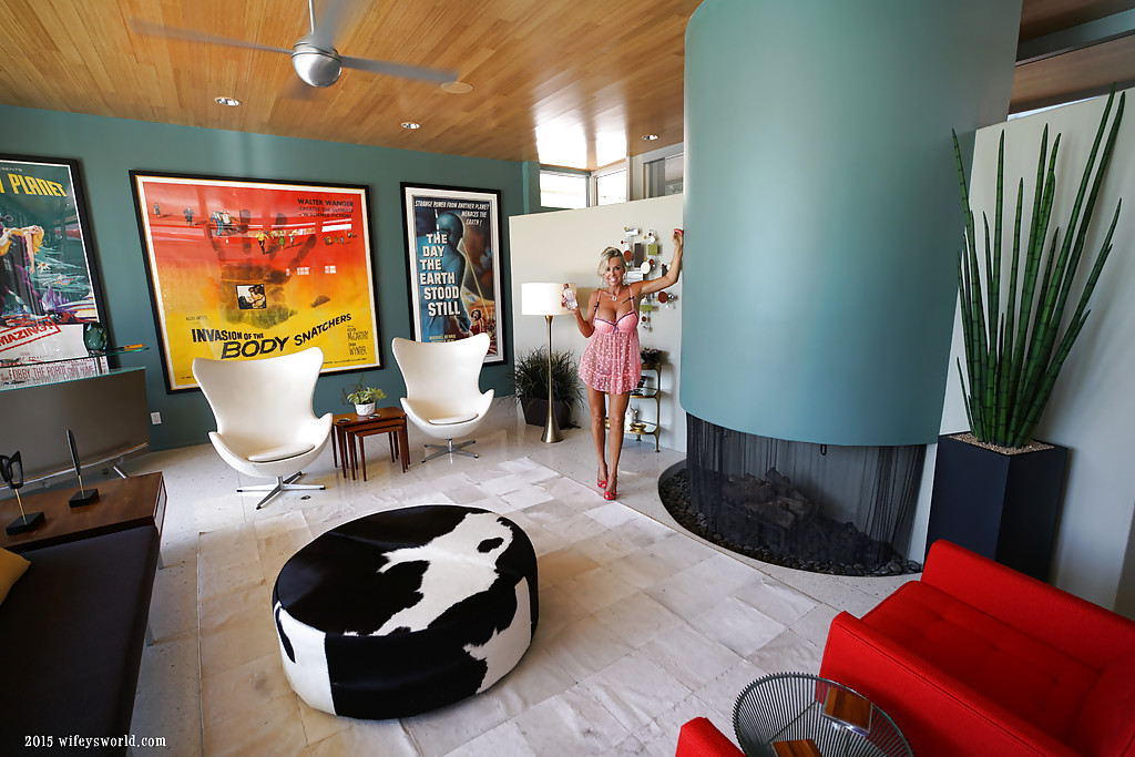 Мужу понравилась сделанная его супругой Сандрой грудь. Но женщине все время казалось, что она не достаточно велика. Блондинка дождалась, когда мужчина отправится на работу, а затем снимает платье, чтобы покрутиться перед зеркалом топлесс, оценивая свои сиськи со всех сторон. Удовлетворившись увиденным, зрелка успокаивается и ожидает прихода мужа для того чтобы заняться сексом.