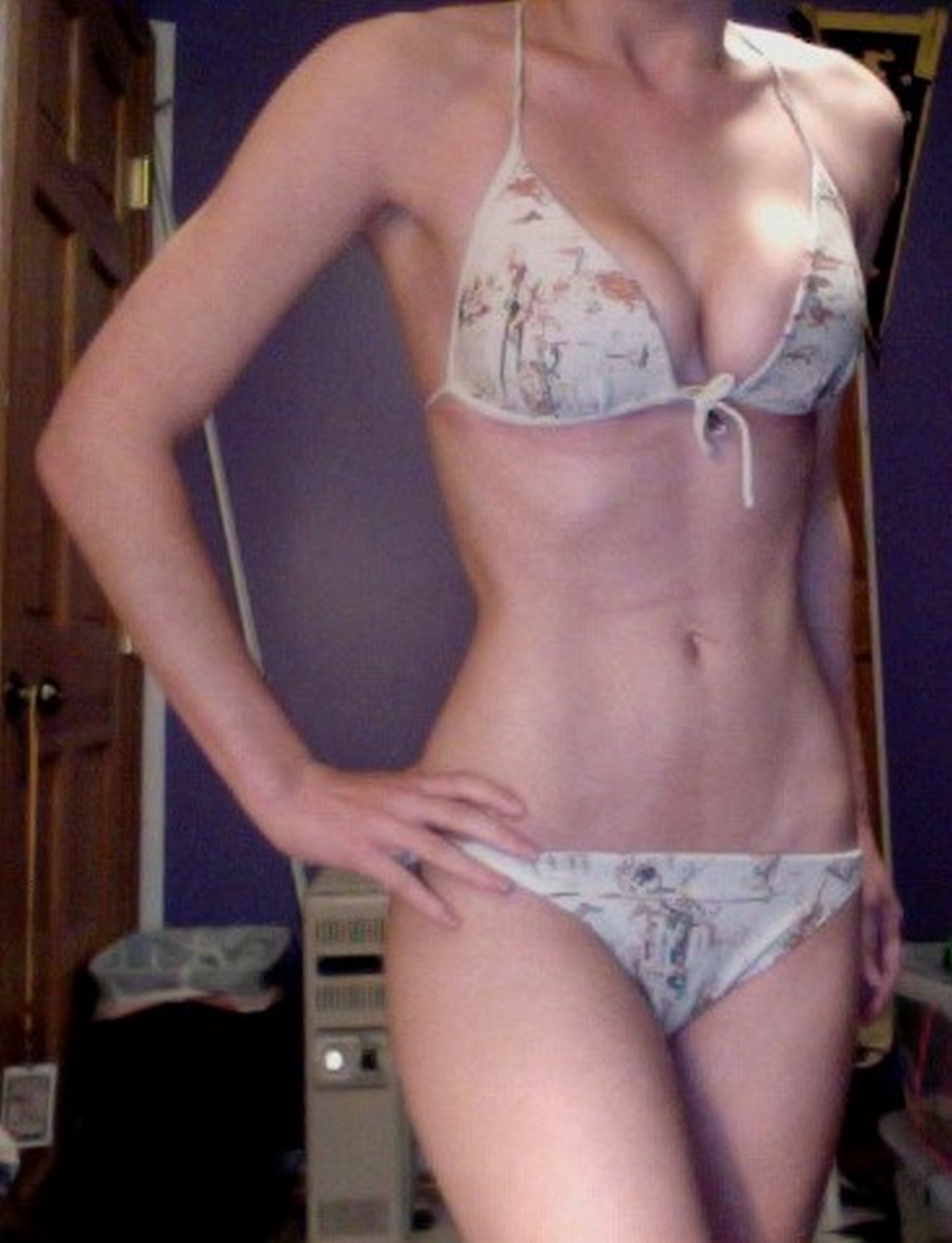 Худая брюнетка вблизи фотает свои женские прелести в нижнем белье и голышом. Чаще всего любительница показывает ухоженную писечку с небольшими половыми губками, которые в некоторых кадрах раскрываются, словно ожидая проникновения члена.