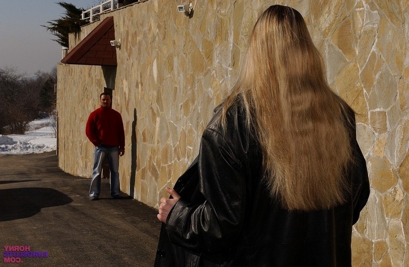 Озабоченная блондинка ходила по городу в плаще и демонстрировала случайным прохожим своё обнажённое тело. Наткнувшись на одинокого мужика в переулке она решила проделать то же самое и с ним. Но он в отличии от других её жертв быстро сориентировался и повёл сучку к себе, где жёстко выебал извращенку.