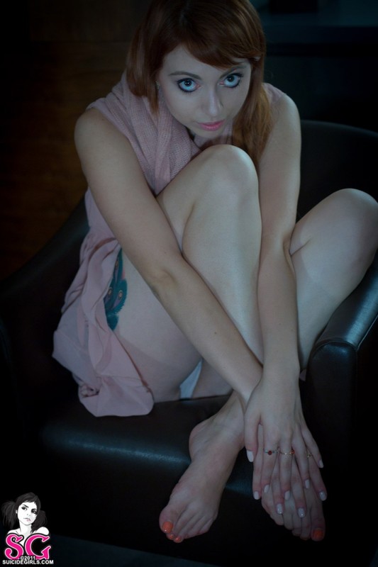 Рыжая неформалка с большой попкой медленно разделась