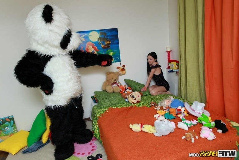 Худенькая и миниатюрная куколка развлекается с огромной плюшевой игрушкой, которая внезапно ожила... прям заветное желание любой девахи, что бы её плюшевая игрушка стала живой и хорошенько оттрахала её. Молодая брюнетка с радостью отдалась любимой игрушке, впустив в свою тугую писечку.