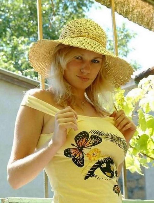 Светловолосая славянка во время отдыха в селе хвастается с огромными титьками без силикона. Красавица позирует в бикини и открытой одежде, позволяя разглядеть ее стройное тело, но полностью не обнажается, стесняясь продемонстрировать киску.