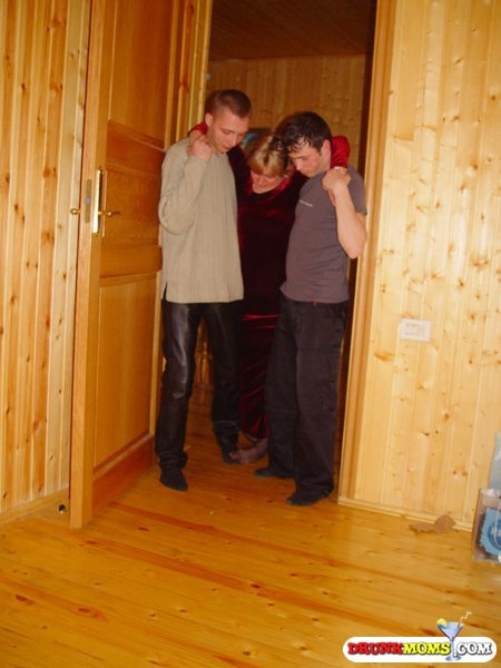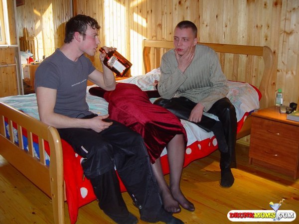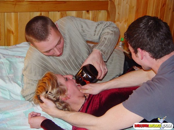 Мужики привели домой бабу, которая была не против с ними выпить. Они понимали, что достаточно будет определенной дозы алкоголя, после которой телочка уже не сможет им отказать. Так оно и получилось. Дама выпила вина, после чего сама предложила мужикам потрахаться. Один из парней дал ей за щеку, а второй решил, что ее влажная щель нуждается в его члене.