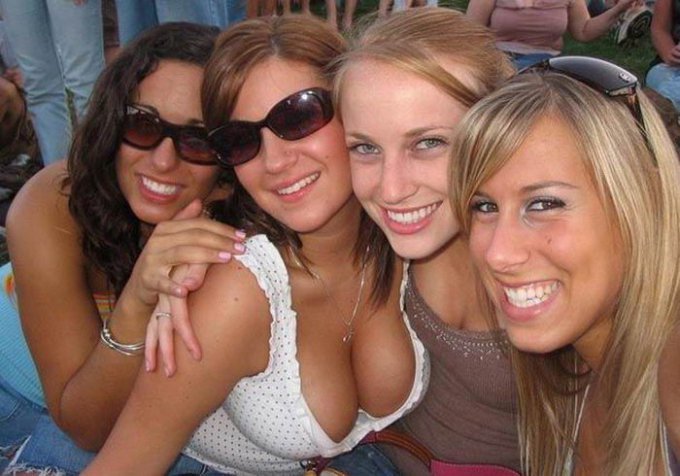 Барышни, в голову которых ударил алкоголь, становятся распущенными и часто совершают экстремальные поступки, засвечивая свои оголенные прелести прилюдно. Три веселые подружки, расслабляются в ночном клубе и не прочь добавить в царящее веселье драйва. Одна из них, опустила лиф платья так сильно, что из него едва не вывалились великолепные большие груди.