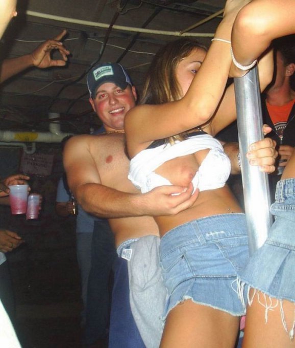 Когда в разгоряченные головки красавиц, развлекающихся на буйных вечеринках, ударяет хмель, они совершенно теряют голову и выкидываю неожиданные экстравагантные номера. Распаленные весельем подружки, нисколько не стесняясь окружающих, задирают одежду и выставляют напоказ свои соблазнительные сиськи, позволяя насладиться картинкой всем желающим.