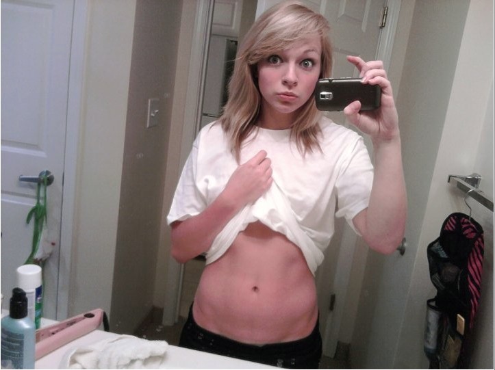 Задорные милашки легко соглашаются на просьбы знакомых по сети прислать свои эротические селфи. Они не стесняясь оголяют тела, чтоб сделать пикантные селфи. Девица стоит перед зеркалом бочком, демонстрируя большие сиськи отличной формы, с очень возбуждающими сосками и слегка оттягивает трусики, показывая аккуратную полоску стриженых волос на лобке.