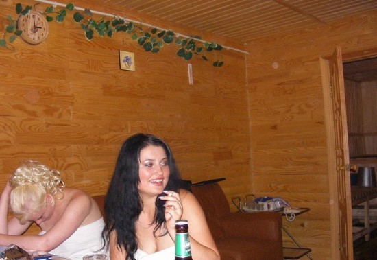 Красивая телка поехала в гости к своему другу, он настоятельно рекомендовал ей посетить его знаменитую сауну, которая должны помочь немного расслабится. Она приехала и сразу же пошла в сауну, где долго парилась со всеми гостями, затем выпила достаточно пива и отправилась спать. После сна, телка решила немного перепихнуться с симпатичным хозяином и, раздевшись догола, стала соблазнять его своим неидеальным телом.