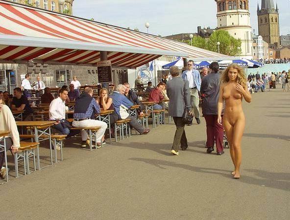 Не подумайте, что ей нечего надеть. Блондинка специально вышла совершенно голой на улицу, чтобы побыстрее найти себе хахаля для секса, уж больно хотелось развратнице поебаться. Но пока у телочки нет, ни одного кандидата на секс. Парни смотрят на нее, фоткают, смеются, а знакомиться никто не пытается, неужели мужикам разонравились голые телочки? Неизвестно сколько пришлось пройти красотке, квартал, пару или только до первого поста полиции, но наверное, девушка все же нашла себе развлечение на ночь. Не может быть, чтобы голенькое молодое тело никого не завело