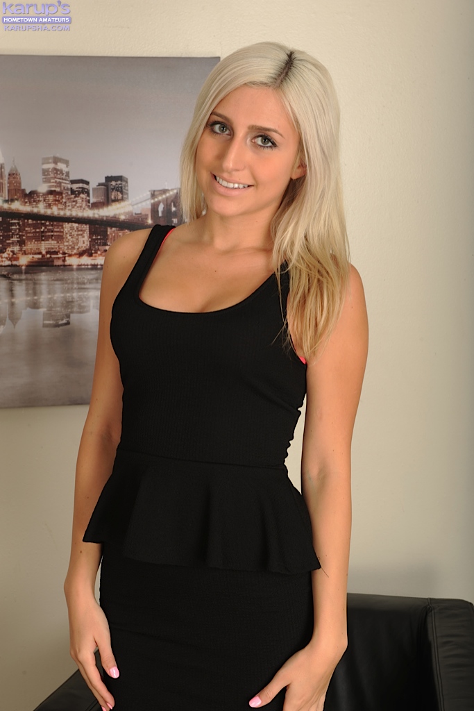 Едва длинноногая блондинка добралась до дома после работы, она вошла в прихожую и направилась к обитому кожей креслу, чтобы усесться в него, свесить ножки и хорошенько помастурбировать. Обтягивающее платье черного цвета вскоре было на полу, а красавица уже почти сняла роскошное белье, затем широко раздвинула ноги, оттянула половые губки и начала массировать промежность.