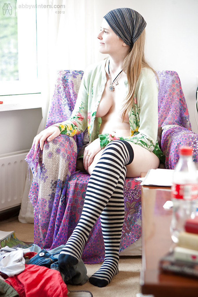 Парень этой молодой неформалки пообещал приехать к ней в гости. Девушка уже давно приготовилась к встрече, раздевшись и освободив от вещей кровать для горячего секса с любовником. Но тот все не едет, задерживаясь в пробках. Рыжеволосая красавица уселась на подоконник и стала выглядывать на улицу, ожидая, когда долгожданный гость появится с членом наперевес.