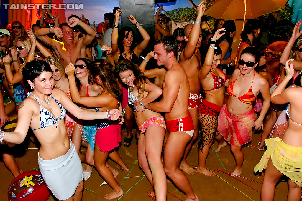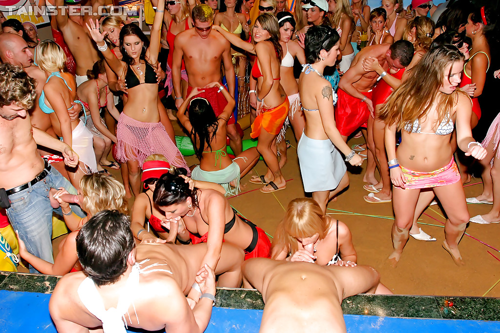 Богатенький мачо устроил приватную дискотеку, пригласив туда множество знакомых, в особенности женского пола. Оказалось, мужчин было не так много, и поэтому девушки, после того как выпили приличное количество алкогольных напитков начали группками приставать к сильному полу, а те лишь снимали с себя штаны и позволяли девицам вытворять любые пошлые вещи.